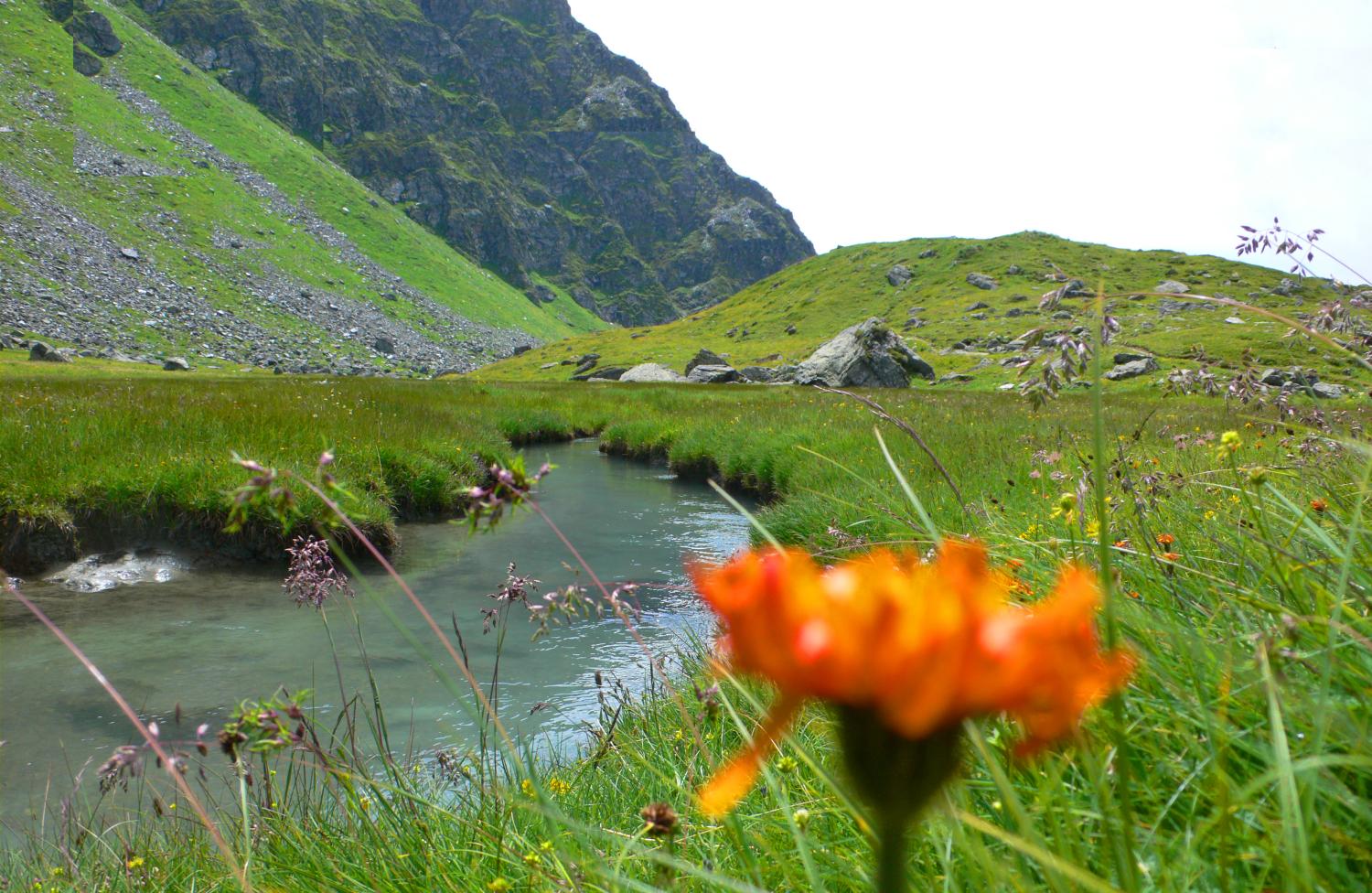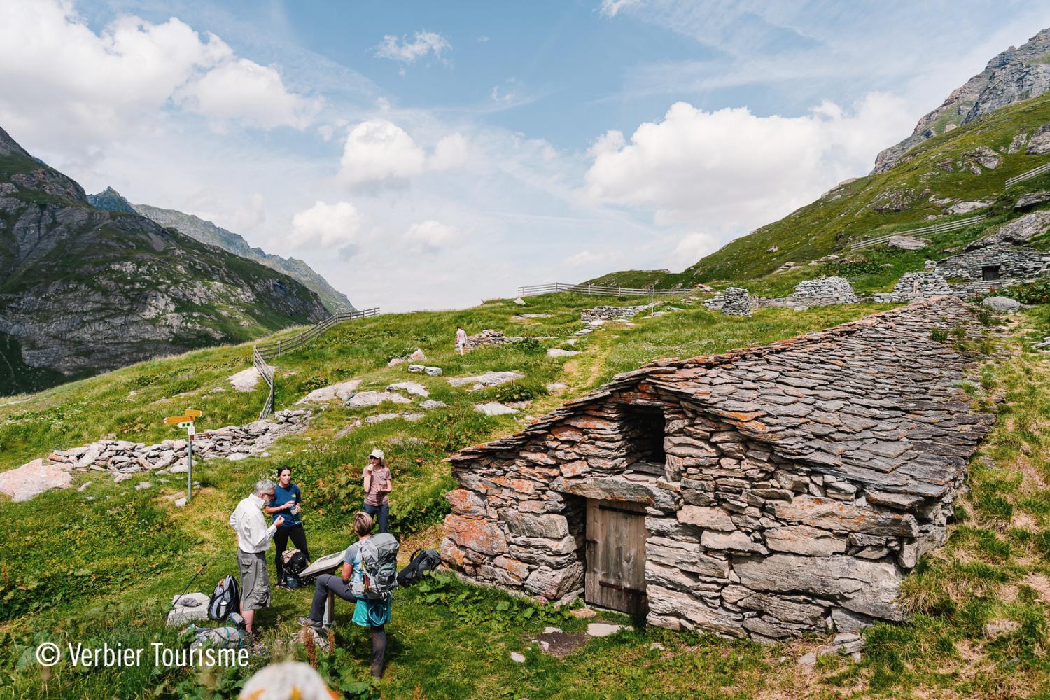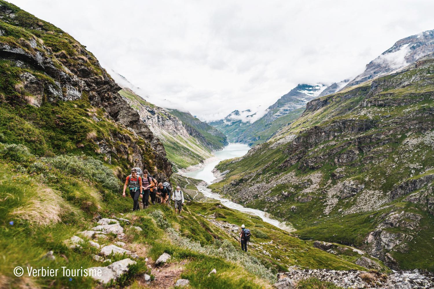Der Abstieg führt durch einsame Landschaften und entlang alter Alpwege zum Hotel, das der dem monumentale Staumauer des Lac de Mauvoisin vorgelagert ist.