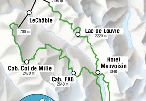 Das Finale führt über den sanften Grad und durch Wälder hinunter zu den Mayens de Bruson und mit der Seilbahn nach Le Châble, wo sich unsere eindrucksvolle Rundwanderung durch eine der wildesten Regionen der Schweiz schliesst.