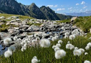Ende Juli ist auf 2500 die Flora voll in Pracht. Eine Edelweiss-Wiese wartet auf uns.