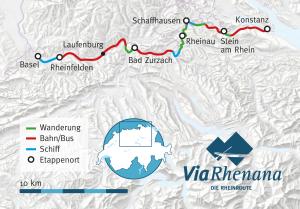 Geführte ViaStoria Kultur-Wanderreise am Hochrhein von Konstanz nach Basel. Die Landschaft am Hochrhein vom Bodensee nach Basel, halb deutsch, halb schweizerisch, ist zwar flach, bietet aber zahlreiche kulturelle, technische und landschaftliche Surprisen.